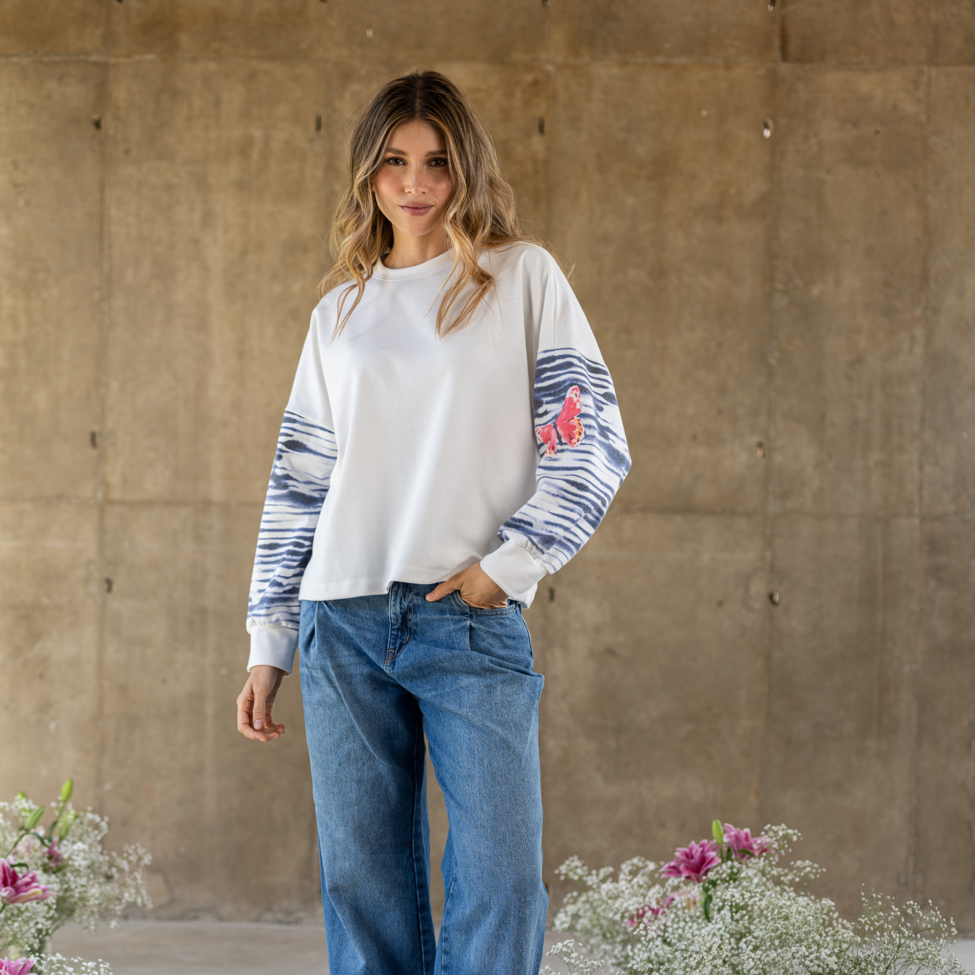 La modelo miss 1.79cm y utiliza talla M